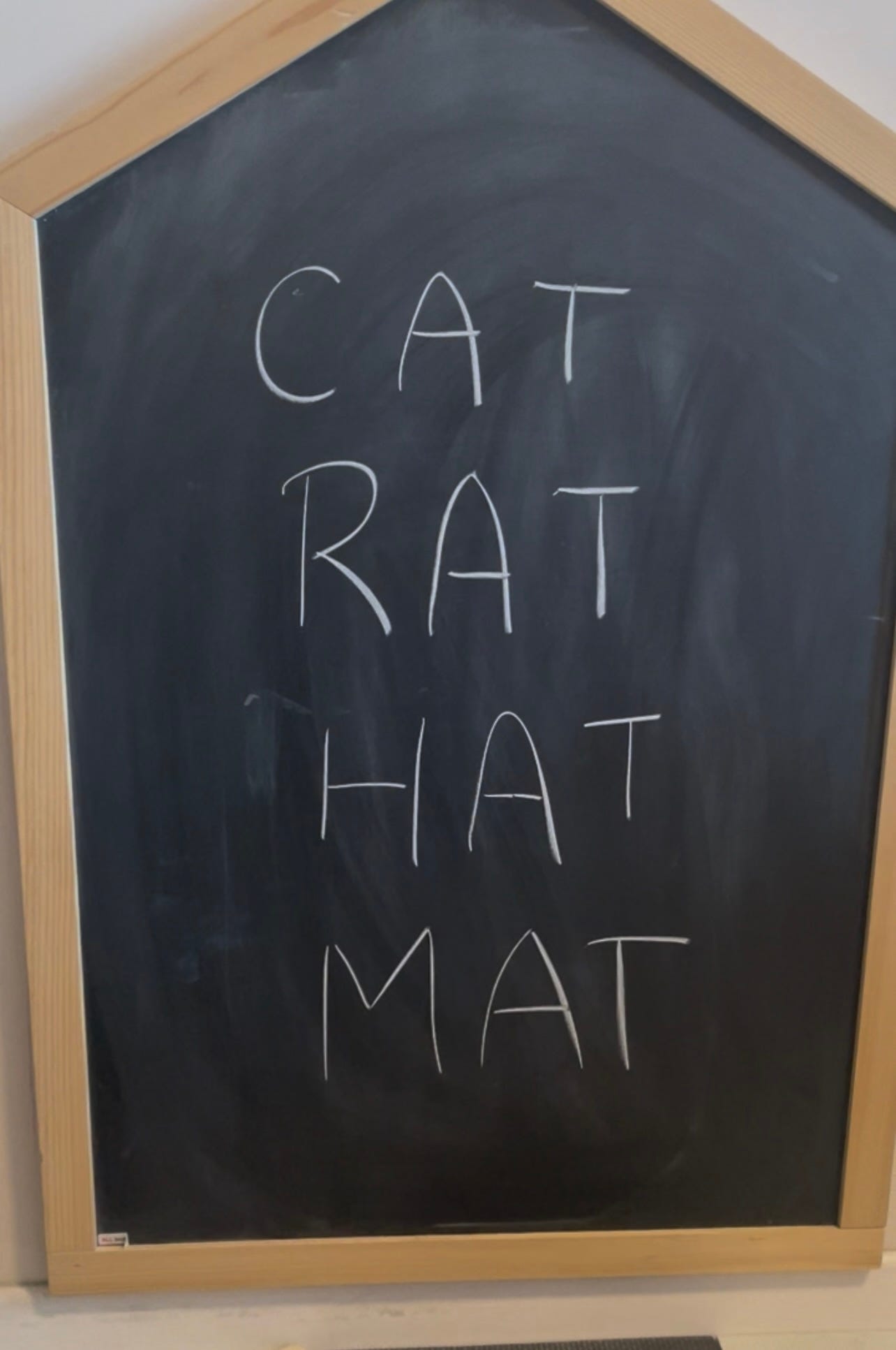 And yet, one day, while we were playing near the chalkboard, I casually wrote the word "cat" in big letters. He looked at it, paused, and read it out loud.